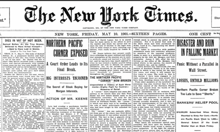 What Is Risk? The Story That Shows It All In May 1901, something extraordinary and terrifying happened in the stock market. Two railroad titans, James J. Hill and E.H. Harriman, were secretly buying shares of Northern Pacific Railway. Each ended up controlling over half the company’s stock. The battle to corner the stock pushed the … Continue reading Risk Control 101